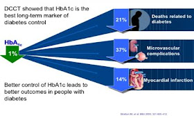 A cada aumento de 1% na HbA1C o risco de desenvolvimento de complicações crônicas do diabetes aumenta exponencialmente.
